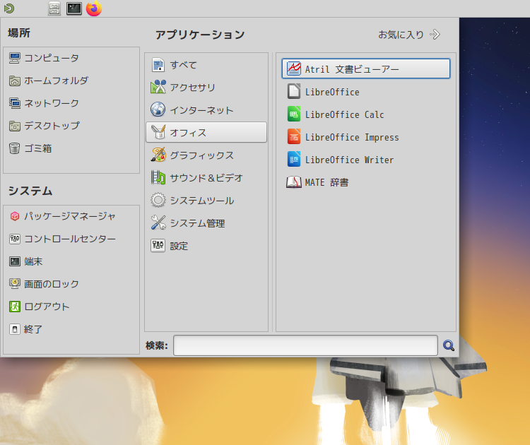 1. 概要 ドキュメントビューアとして、「Atril」を使用します。 「Atril」は、「MATE」のドキュメントビューアなので、デフォルトでインストールされています。 2. 起動 「スタート」→「オフィス」→「Atril」