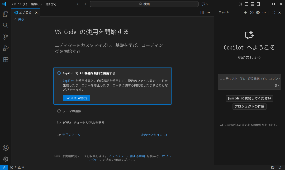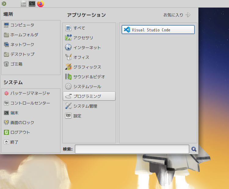 「スタート」→「プログラミング」→「Visual Studio Code」