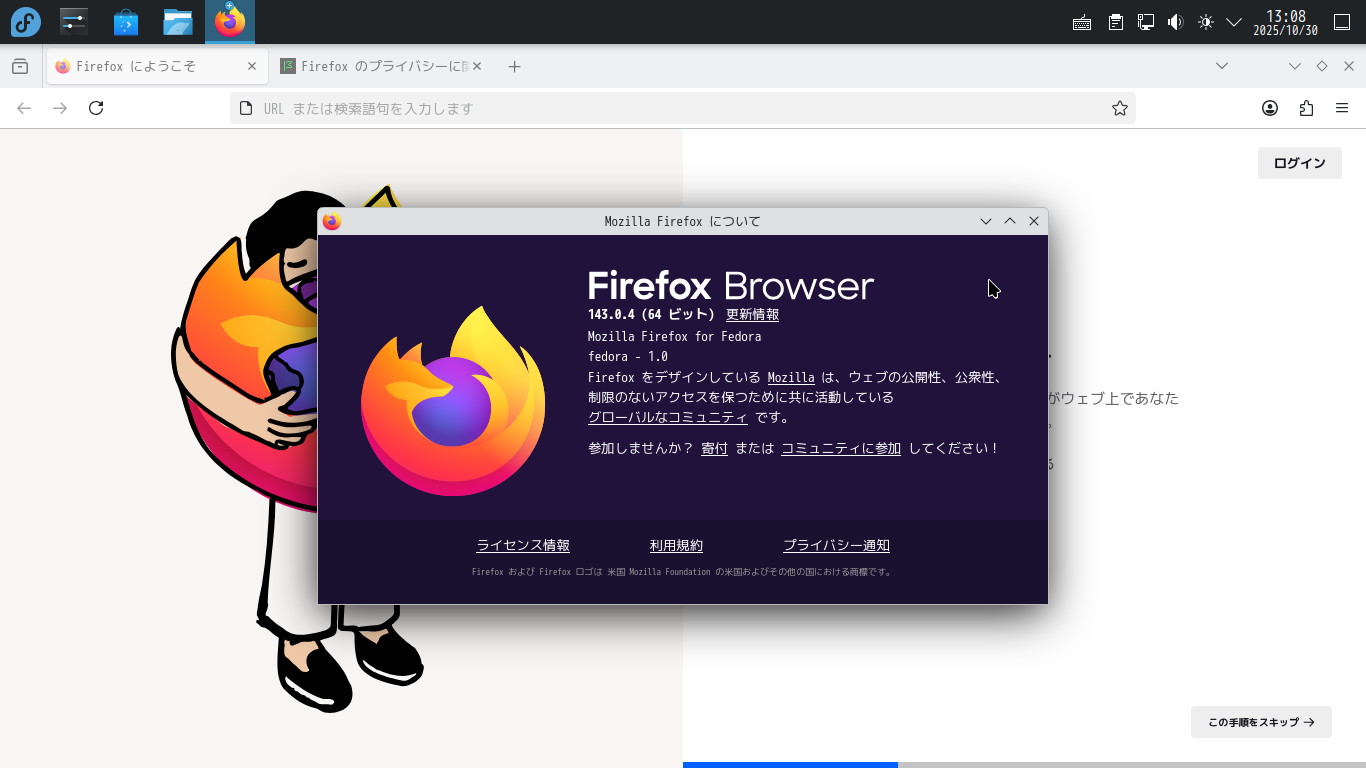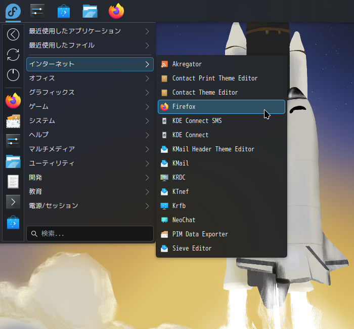 1. 概要 ブラウザとして、「Firefox」がデフォルトでインストールされています。 日本語化までされていますので、「Firefox」をそのまま使用します。 2. 起動 「スタート」→「インターネット」→「Firefox」