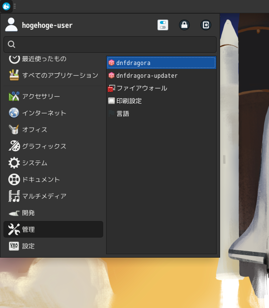 Fedora - 43 - XFCE - パッケージ管理 Dnfdragora