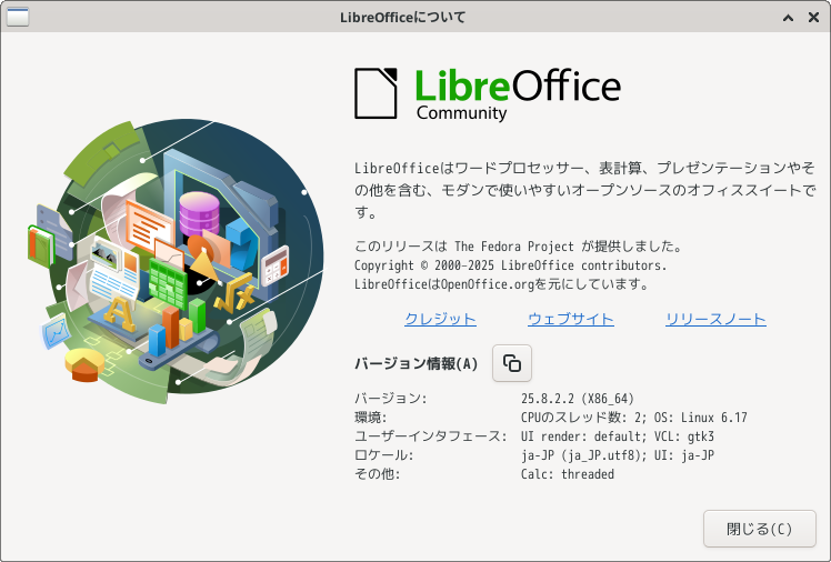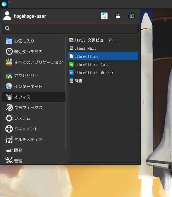 「LibreOffce」は、たいていデフォルトでインストールされ、日本語化されているのですが、「XFCE」では、日本語化されていません。