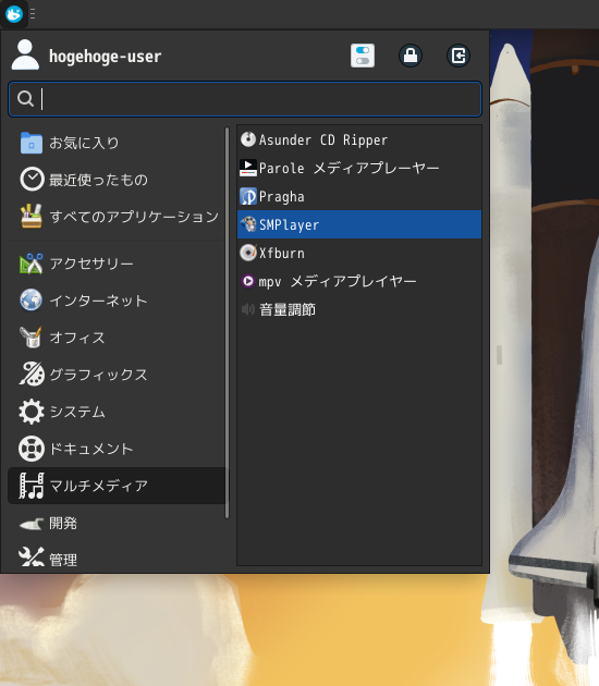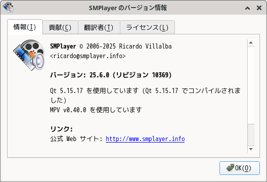 1. 概要 メディアプレイヤーとして、「SMPlayer」をインストールして使用します。 2. インストール 「SMPlayer」のインストールには、「unitedrpms」というリポジトリを追加する必要があります。 リポジトリ追加の手順に関しては、「Fedora - 43 - 共通事項」をご参照ください。 リポジトリを追加したら、「root」ユーザ権限で。 dnf install -y smplayer openh264 3. 起動 「スタート」→「マルチメディア」→「SMPlayer」