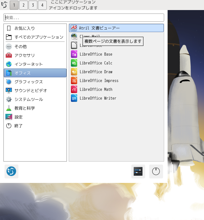 1. 概要 ドキュメントビューアとして、「Atril」を使用します。 2. インストール 「Dnfdragora」で「atril」を検索して、インストールします。 3. 起動 「スタート」→「オフィス」→「Atril」