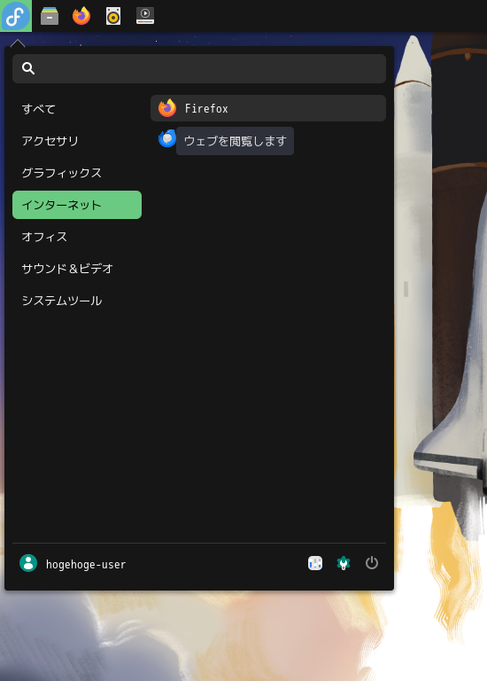 1. 概要 ブラウザとして、「Firefox」がデフォルトでインストールされています。 2. 起動 「スタート」→「インターネット」→「Firefox」