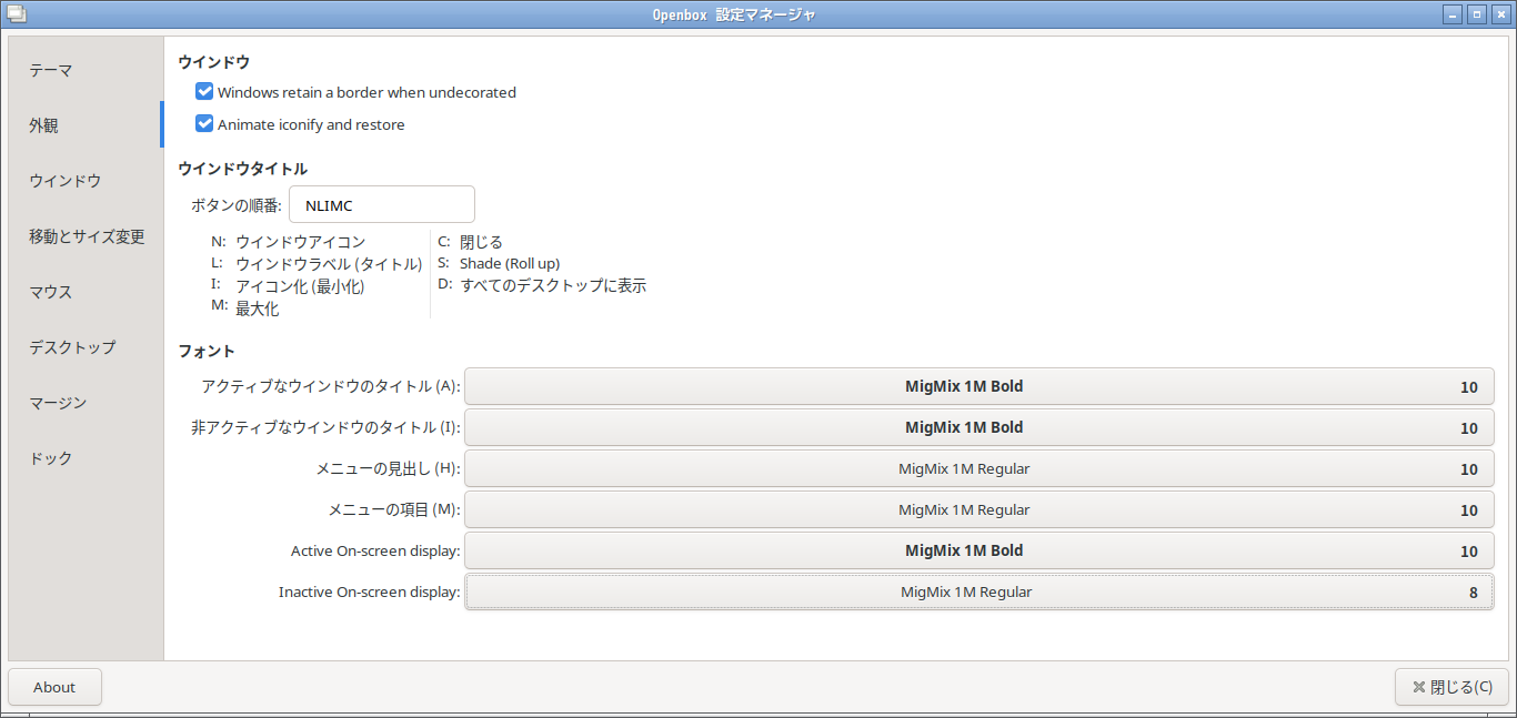 「LXDE」の共通的な操作やカスタマイズ方法については、「LXDE - 共通事項」をご参照ください。  本プラットフォームに適用したのは、下記の項目です。 ・画面キャプチャ ・フォント ・スクリーンロック ・パネル  フォントは、下記を設定しました。