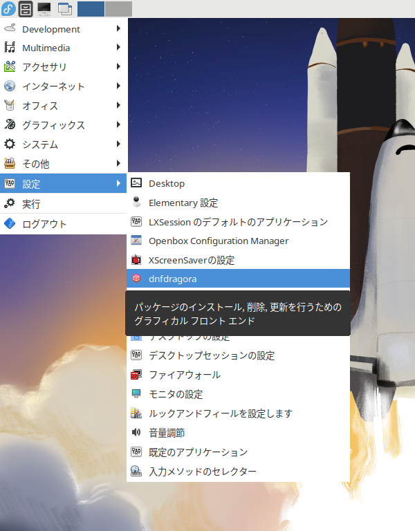 Fedora - 43 - LXDE - パッケージ管理 Dnfdragora