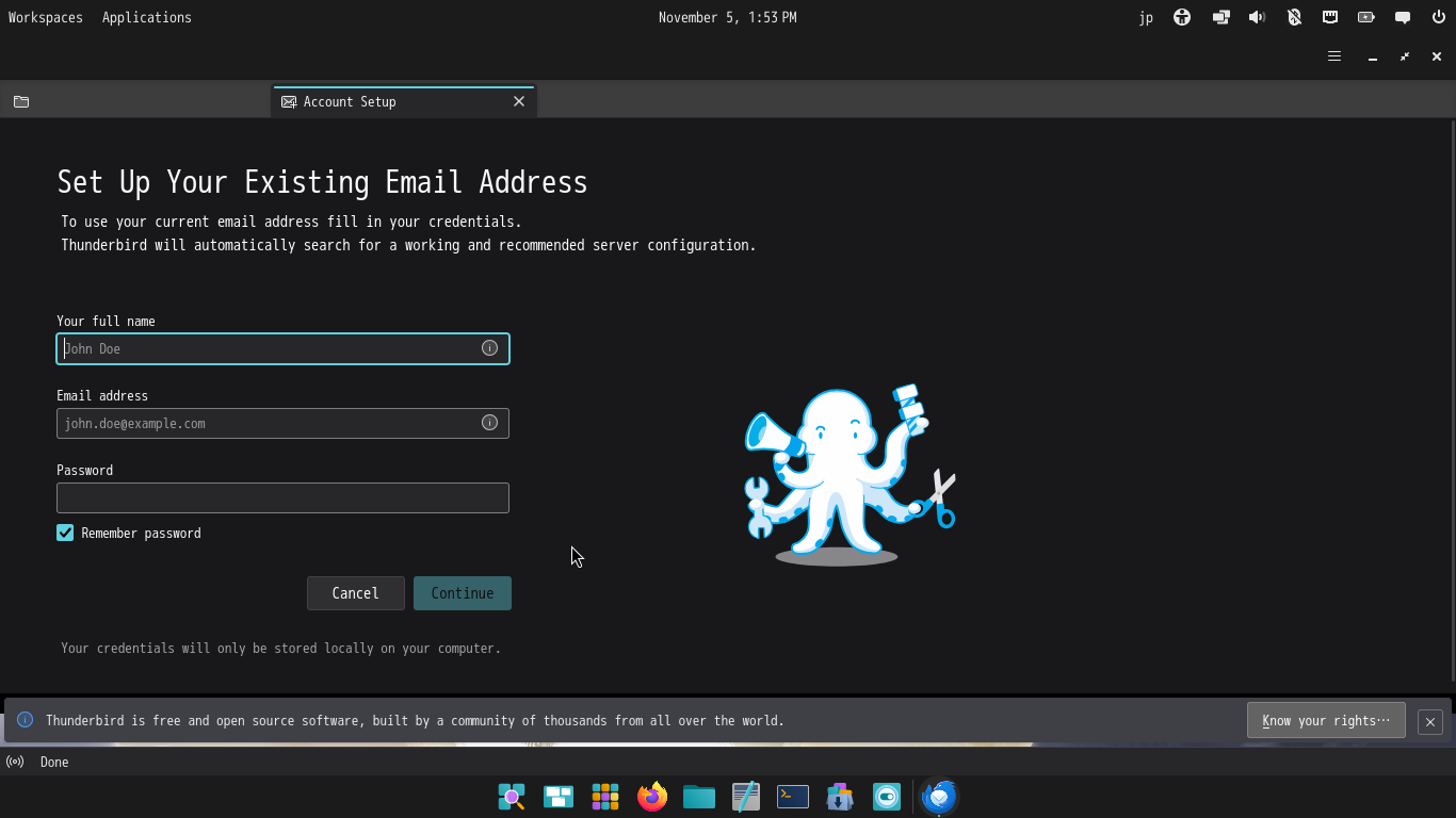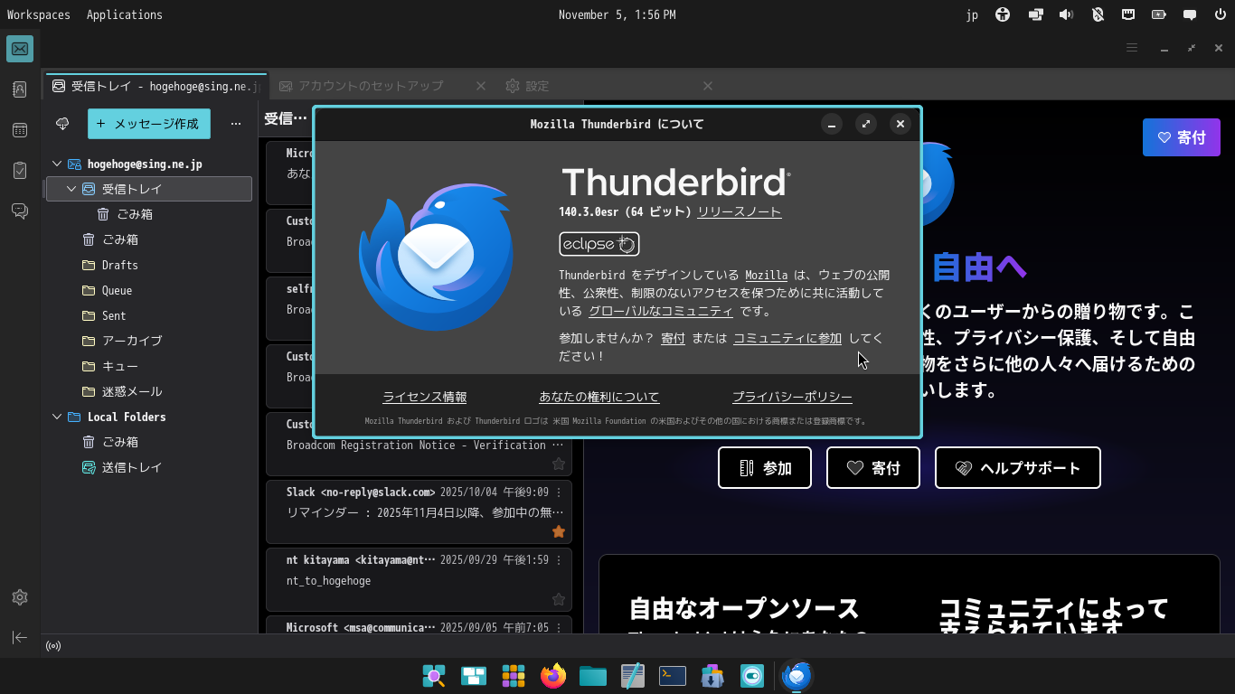 Fedora - 43 - COSMIC - メールクライアント Thunderbird