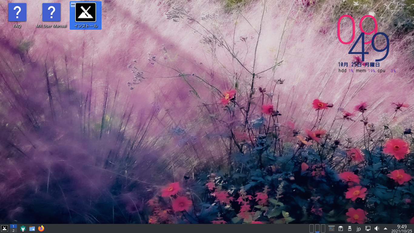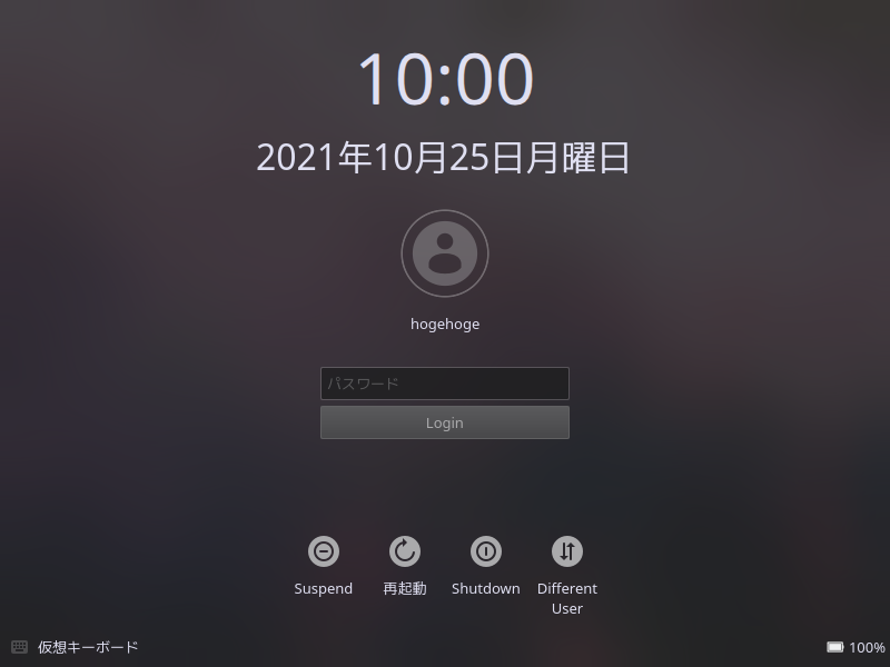 以降の手順は、「MX Linux - 21 - 共通事項」に記載の内容と同様です。 ログイン画面が表示されれば、インストールは完了です。