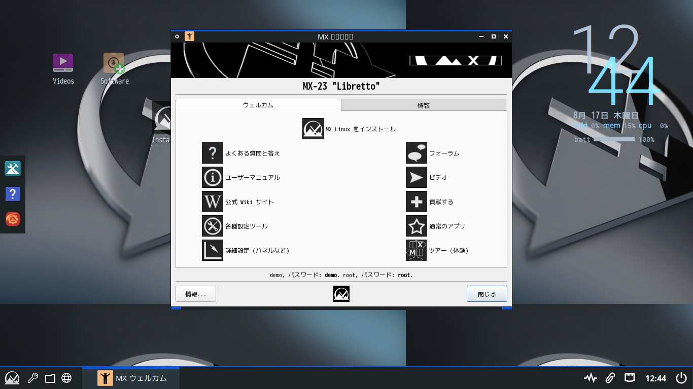 1. 概要 「Fluxbox」は、独立したインストーラが「.iso」で提供されています。 2. インストール インストールに関しては、「MX Linux - 23 - 共通事項」をご参照ください。 インストール時のメニューで。 「MX Linux をインストール」