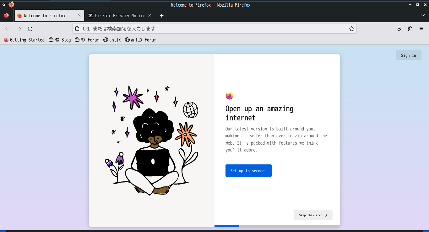 MX Linux - 23 - Fluxbox - ブラウザ Firefox