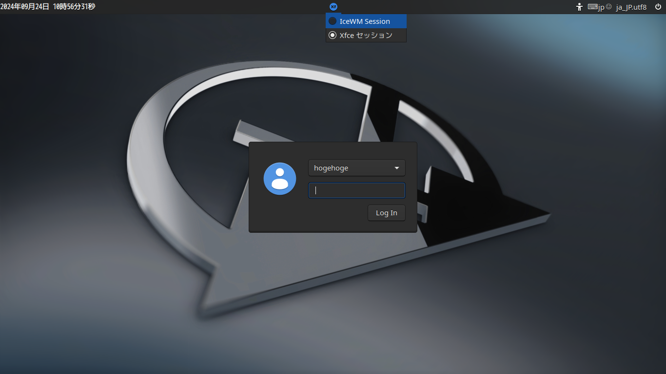 「IceWM Session」を選択すれば、「IceWM」のデスクトップへログインできます。