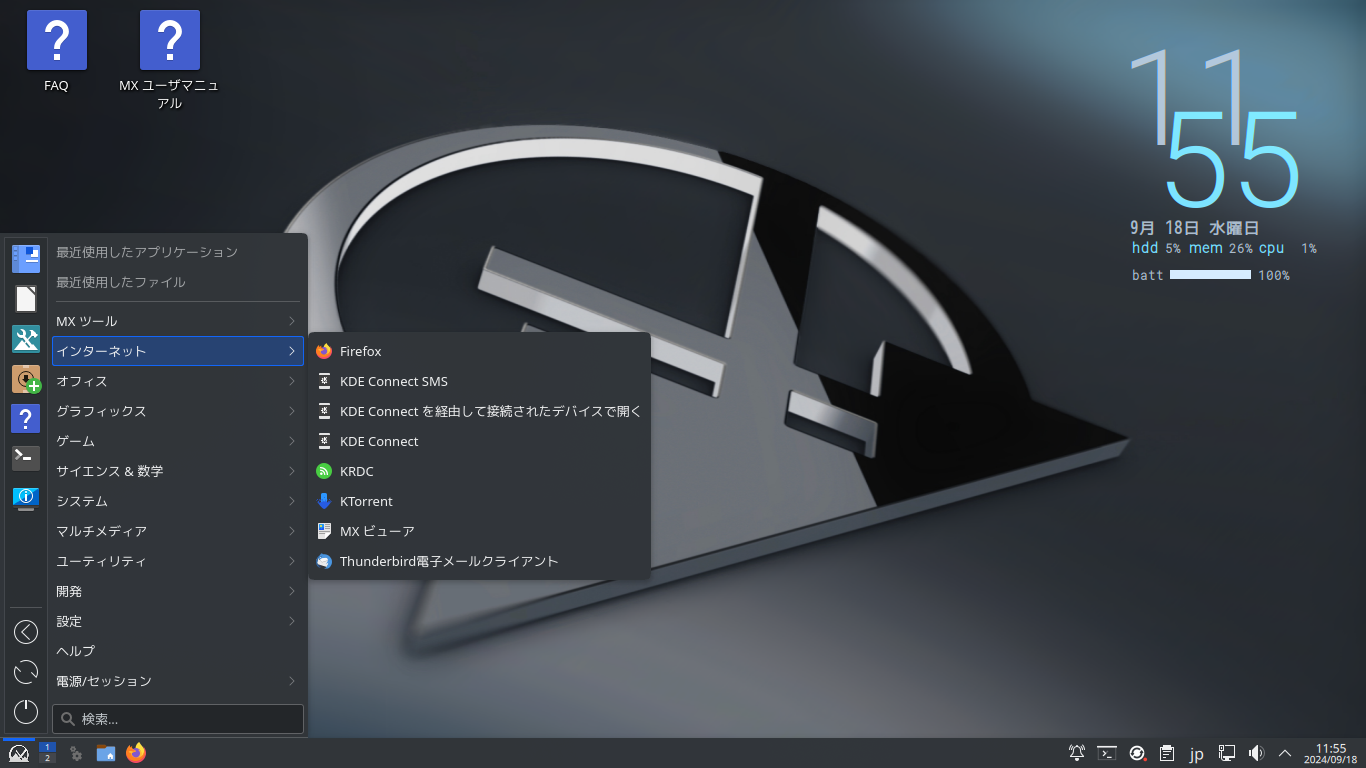 「KDE」の共通的な操作やカスタマイズ方法に関しては、「KDE - 共通事項」をご参照ください。