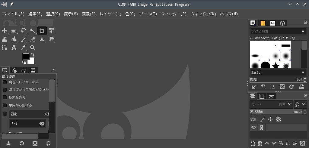 1. 概要 画像編集ソフトとして、「GIMP」を使用します。 「GIMP」は、デフォルトでインストールされています。 2. 起動 「スタート」→「グラフィックス」→「GIMP」