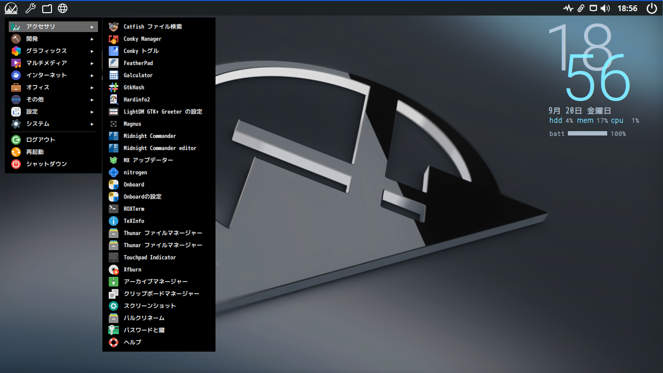 デフォルトのデスクトップ・メニューです。