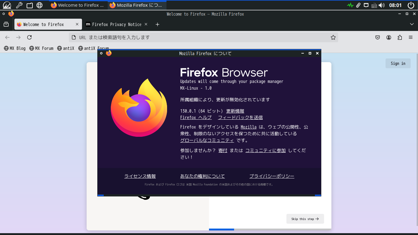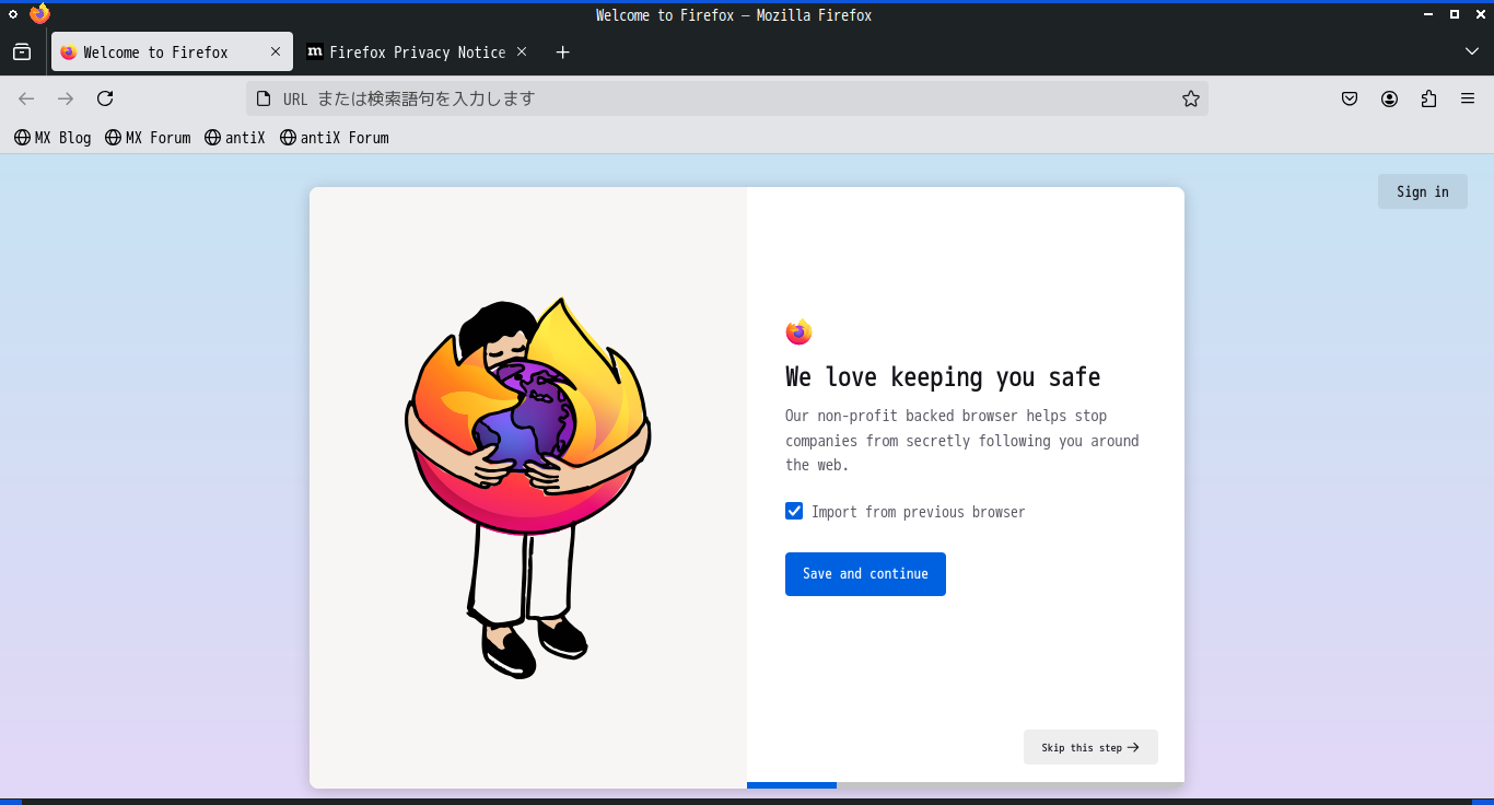 MX Linux - 23.4 - Fluxbox - ブラウザ Firefox