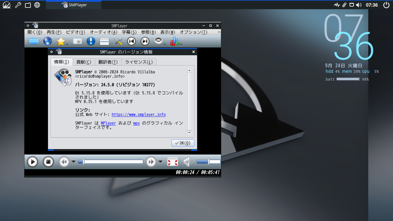 MX Linux - 23.4 - Fluxbox - メディアプレイヤー SMPlayer