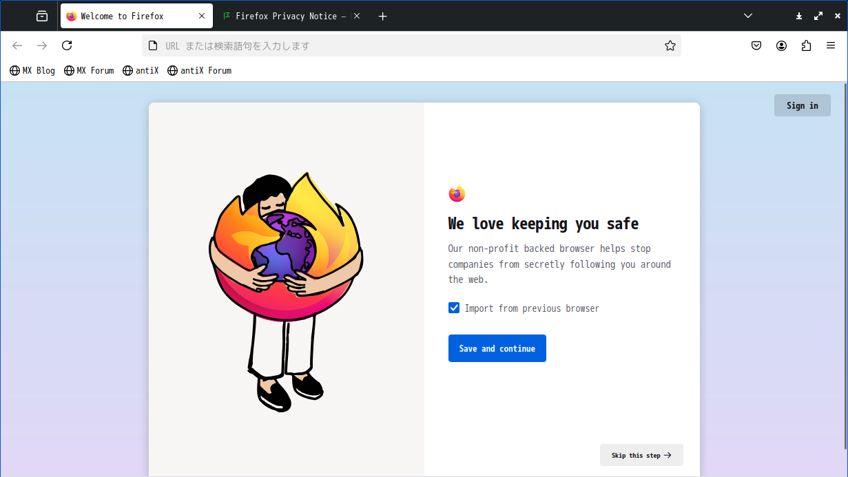 MX Linux - 23.5 - XFCE - ブラウザ Firefox