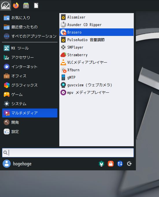 MX Linux - 23.5 - XFCE - 光ディスクライティング Brasero