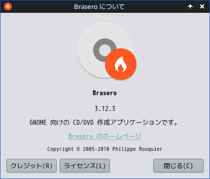 1. 概要 光ディスク(CD・DVD)のライティングソフトとして、「Brasero」を使用します。 2. インストール 「Synaptic」で、「brasero」を検索して、インストールします。 3. 起動 「スタート」→「マルチメディア」→「Brasero」