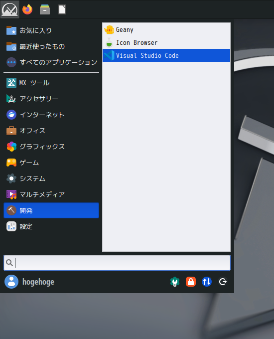 MX Linux - 23.5 - XFCE - 開発環境 Visual Studio Code