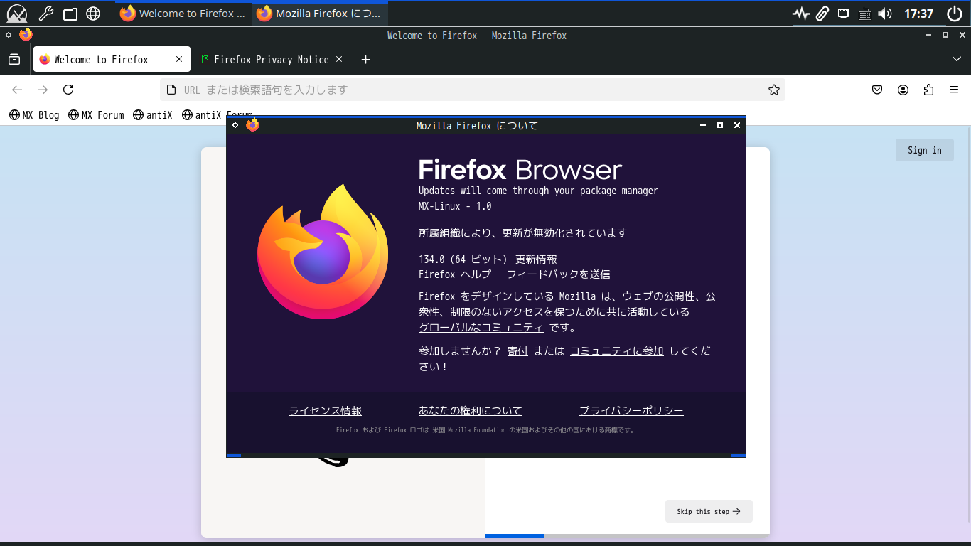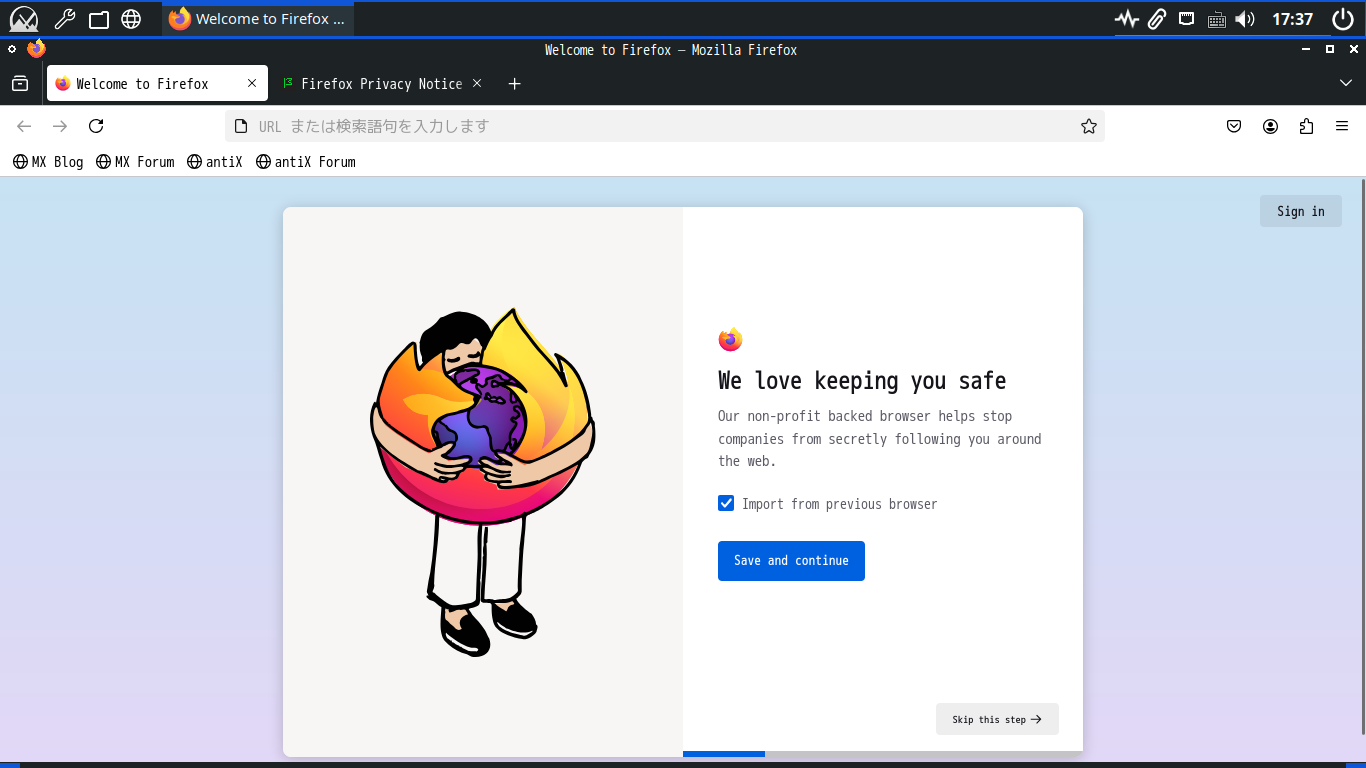 MX Linux - 23.5 - Fluxbox - ブラウザ Firefox