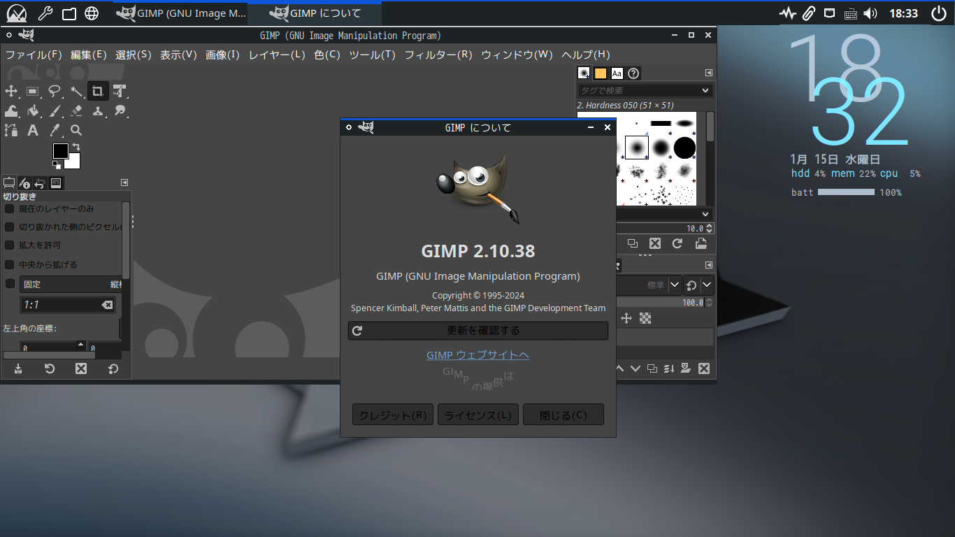 MX Linux - 23.5 - Fluxbox - 画像編集 GIMP