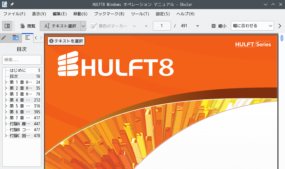 1. 概要 ドキュメントビューアとして、「Okular」を使用します。 「Okular」は、デフォルトでインストールされています。 2. 起動 「スタート」→「オフィス」→「Okular」 メニュー上で、ひとつ下に、「PDF Arranger」というのがあって、これは、編集できるのかしら? いささか気になります。