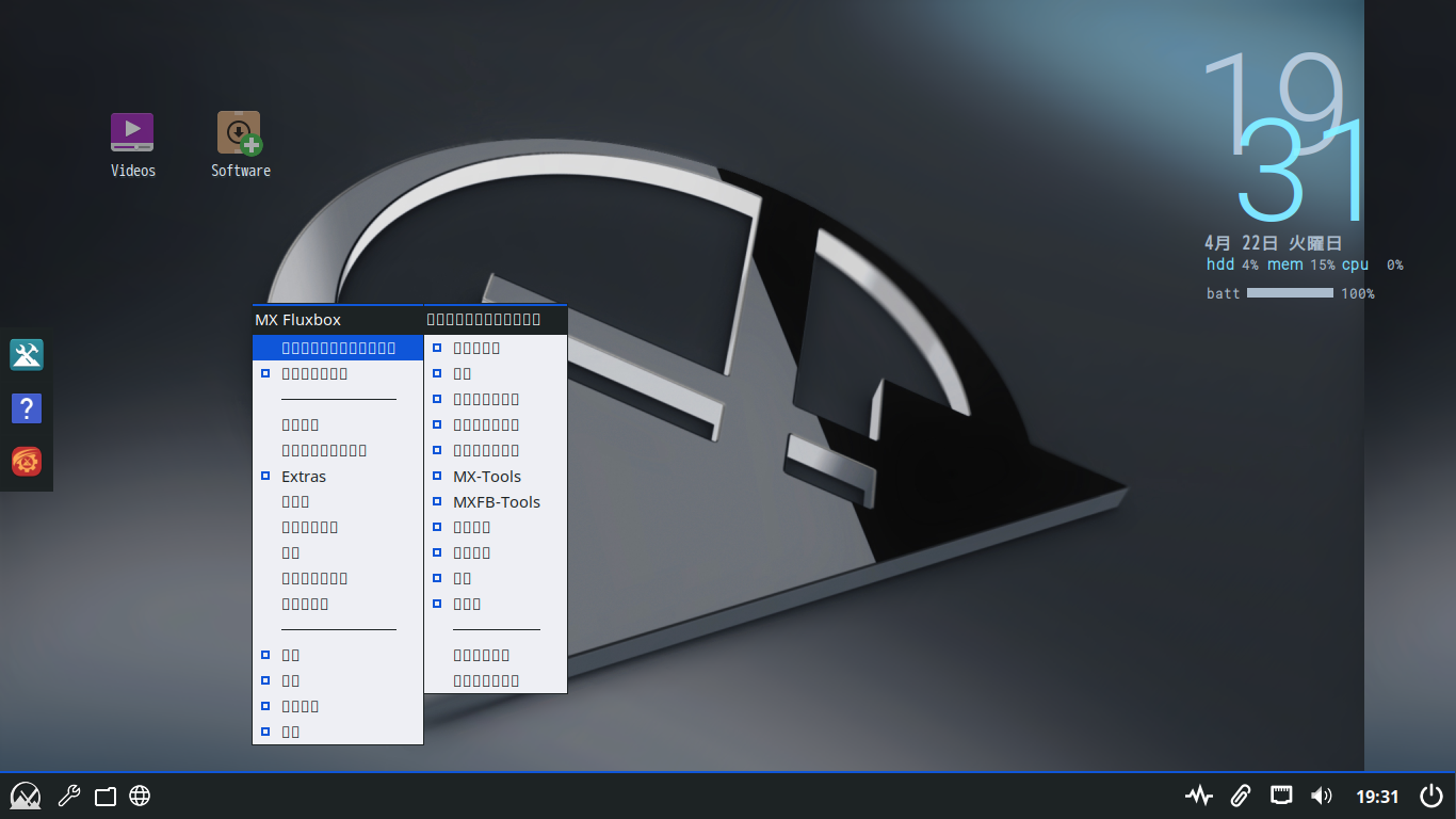 「Fluxbox」の共通的な操作やカスタマイズ方法に関しては、「Fluxbox - 共通事項」をご参照ください。