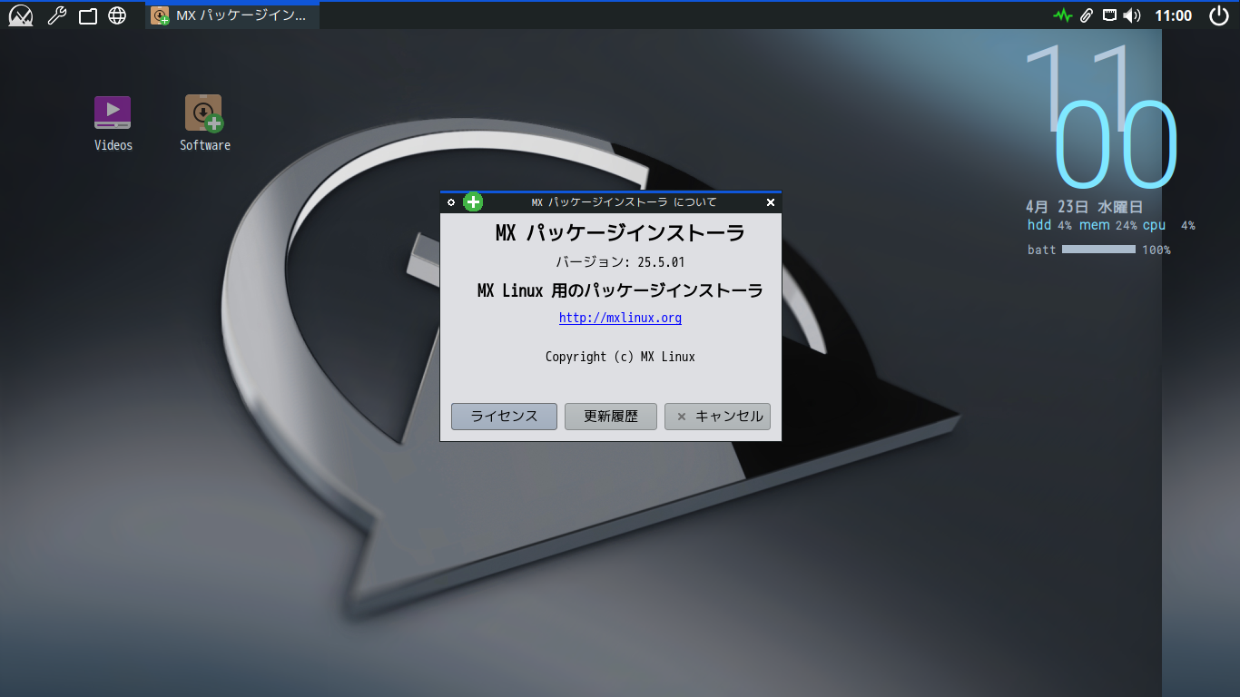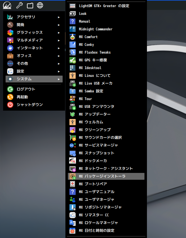 3. MX パッケージインストーラ 「スタート」→「システム」→「MX パッケージインストーラ」