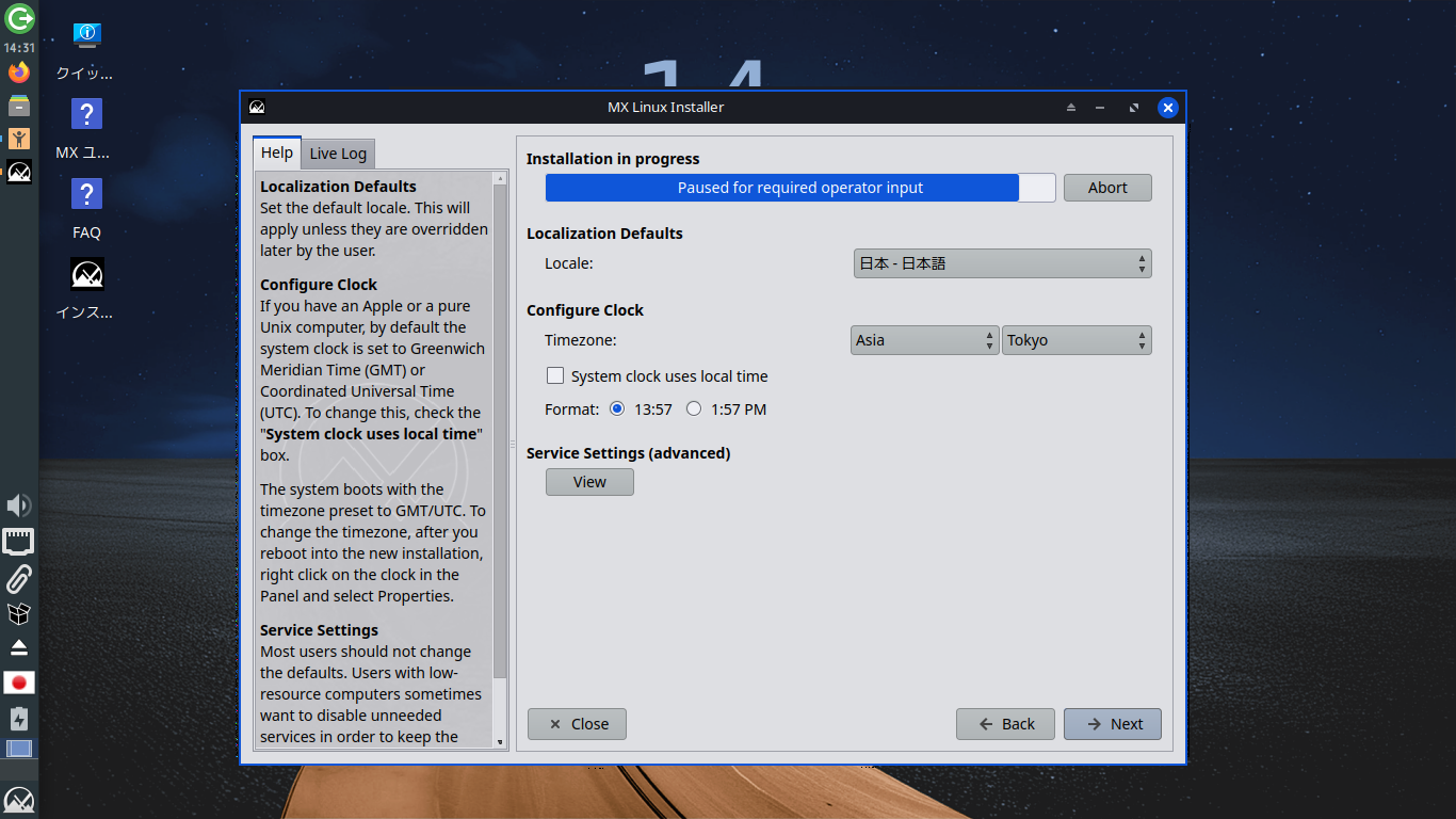 以前は、「日本語」を選択するとタイムゾーンの設定はなくなっていたときがありましたが、現在は、「auto」という選択になっています。