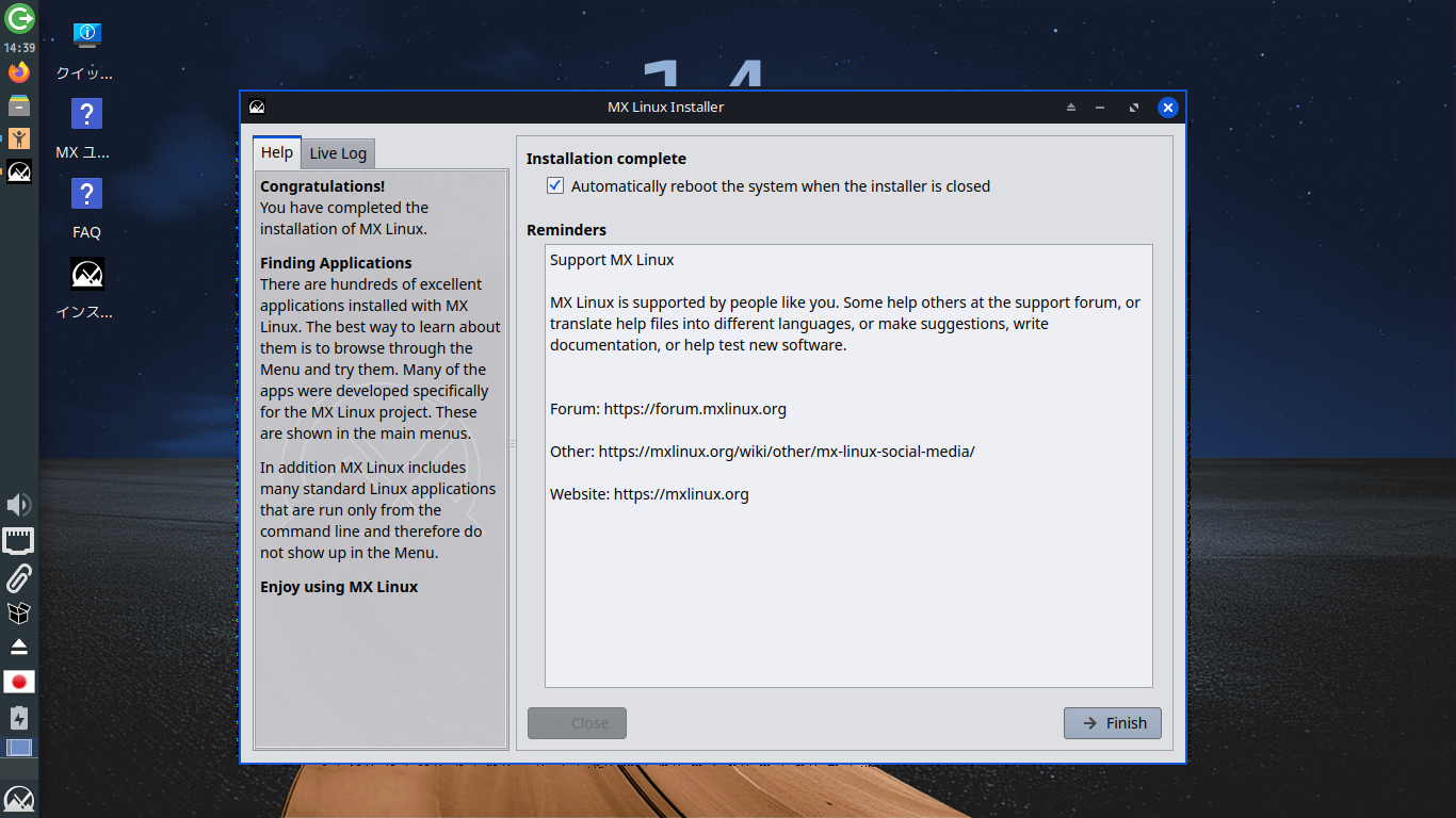 ここで説明するのは、本体となる、「XFCE」環境のインストール手順になります。