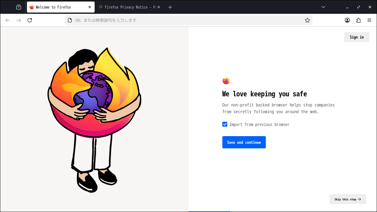 日本語化後、起動直後の状態です。