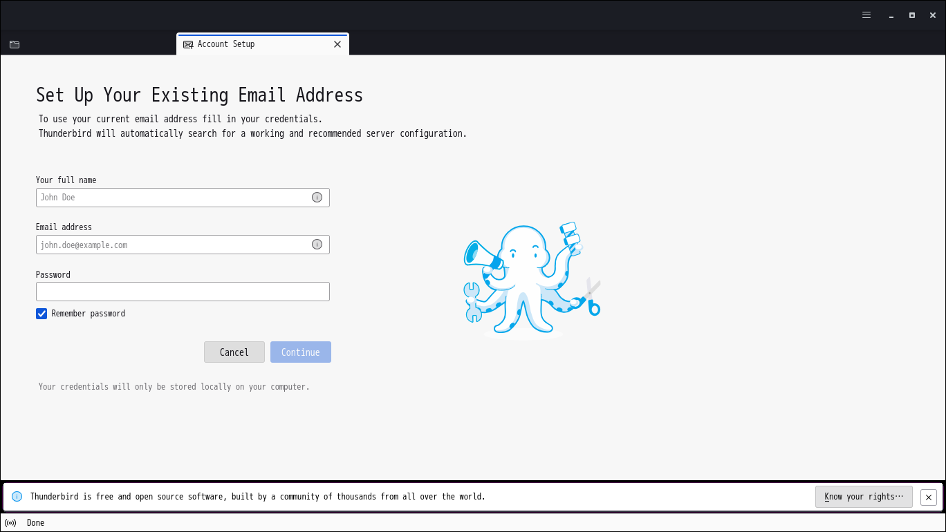 初回起動時は、「メールアカウントのセットアップ」から始まります。