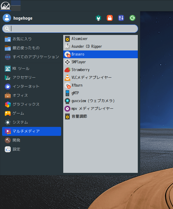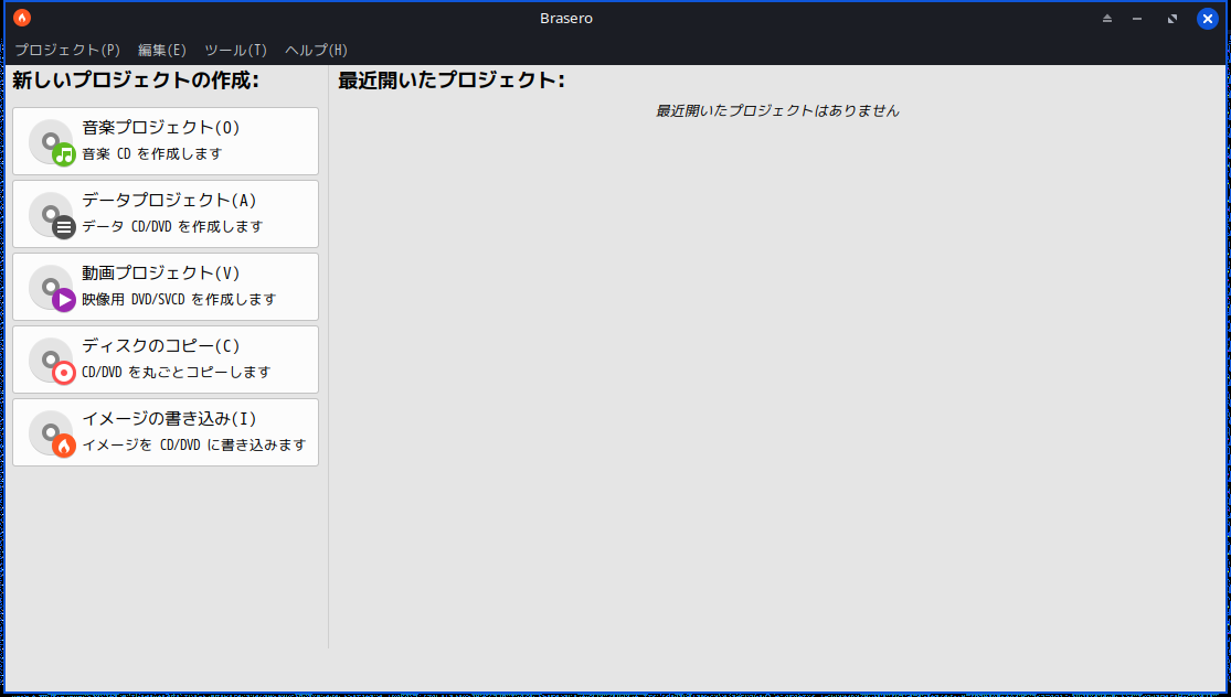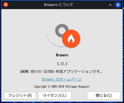 1. 概要 光ディスク(CD・DVD)のライティングソフトとして、「Brasero」を使用します。 2. インストール 「Synaptic」で、「brasero」を検索して、インストールします。 3. 起動 「スタート」→「マルチメディア」→「Brasero」