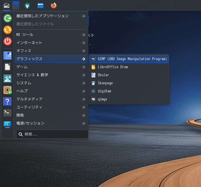 1. 概要 画像編集ソフトとして、「GIMP」を使用します。 「GIMP」は、デフォルトでインストールされています。 2. 起動 「スタート」→「グラフィックス」→「GIMP」