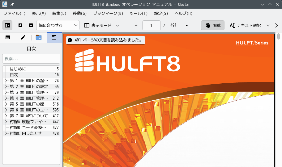 1. 概要 ドキュメントビューアとして、「Okular」を使用します。 「Okular」は、デフォルトでインストールされています。 2. 起動 「スタート」→「オフィス」→「Okular」 メニュー上で、ひとつ下に、「PDF Arranger」というのがあって、これは、編集できるのかしら? いささか気になります。