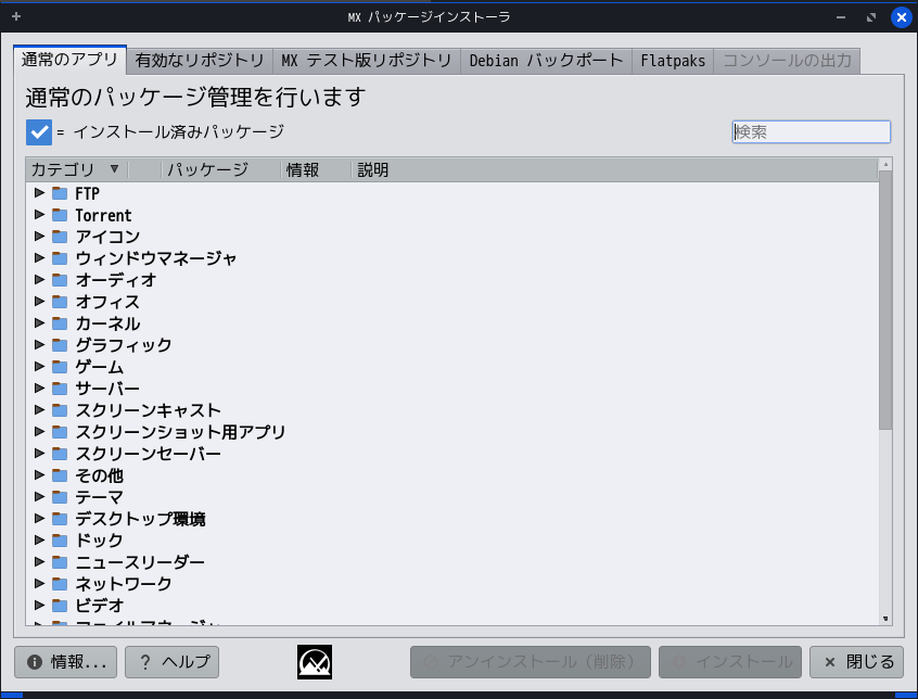 MX Linux - 25 - Fluxbox - パッケージ管理フロントエンド