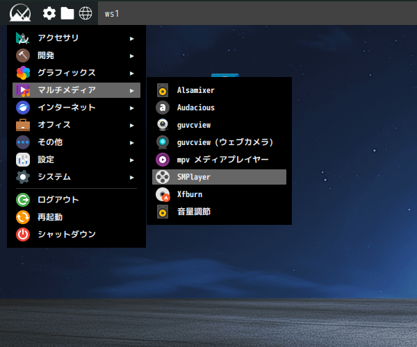 1. 概要 マルチメディアプレイヤーとして、「SMPlayer」を使用します。 2. インストール 「Synaptic」で、「smplayer」を検索して、「smplayer-l10n」をインストールします。 3. 起動 「スタート」→「マルチメディア」→「SMPlayer」