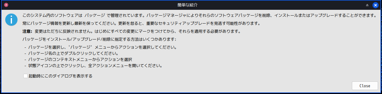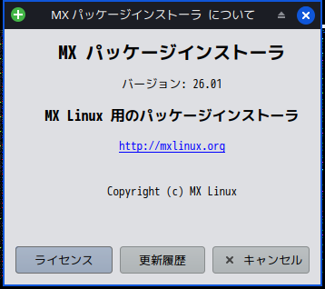 パッケージ管理フロントエンドとして「Synaptic」と「MX パッケージインストーラ」がインストールされています。