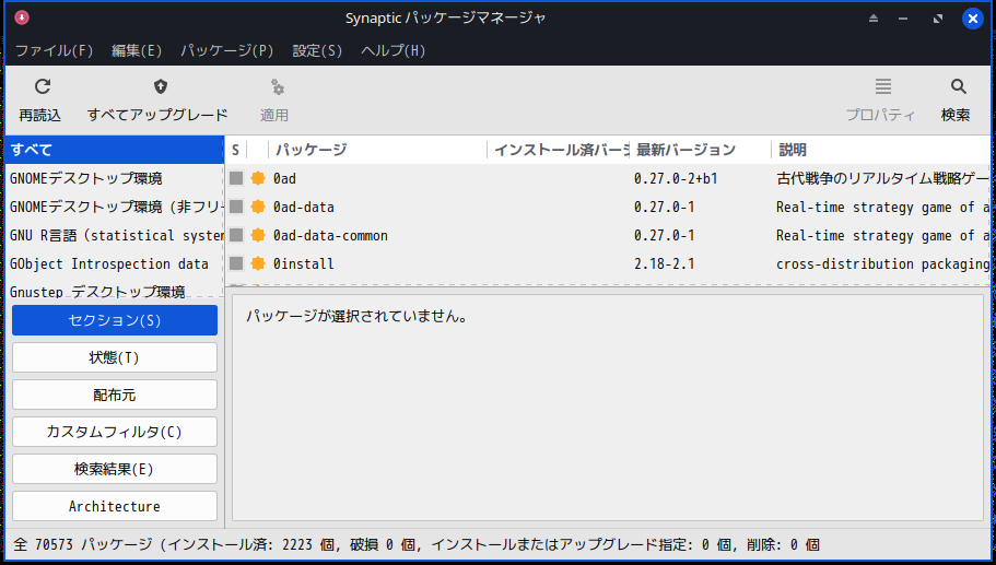 操作方法等は、どちらも、「Linux - 共通事項 - パッケージ管理フロントエンド」をご参照ください。