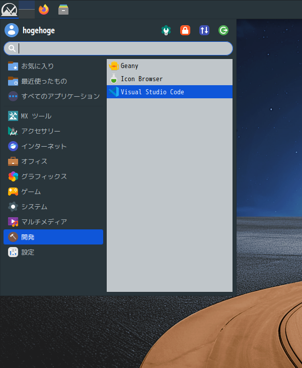 1. 概要 開発環境として、「Visual Studio Code」を使用します。 2. インストール 「MX パッケージインストーラ」で、「vscode」を検索して、インストールします。 3. 起動 「スタート」→「開発」→「Visual Studio Code」
