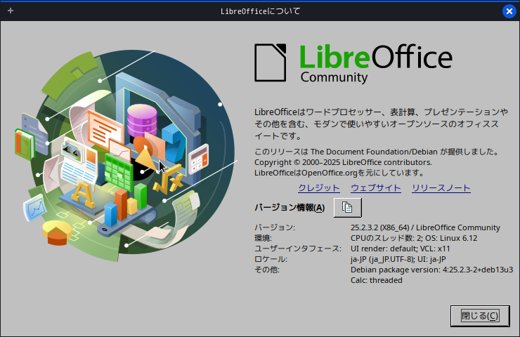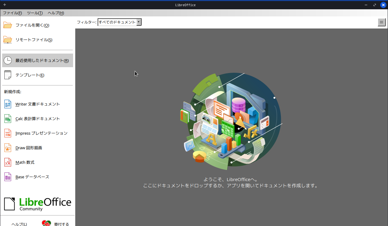 1. 概要 オフィススイートは、インストールされていませんでした。 2. インストール 「Synaptic」で、「libreoffice」を検索して、「libreoffice」と「libreoffice-l10n-ja」をインストールします。 3. 起動 「スタート」→「オフィス」→「LibreOffice」