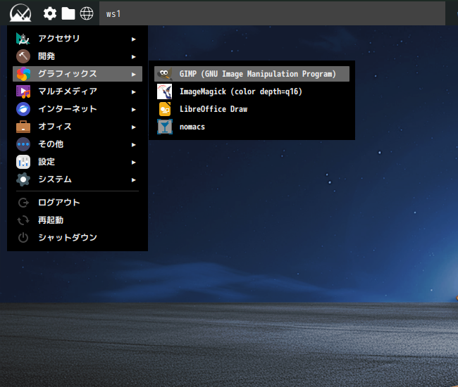 1. 概要 画像編集ソフトとして、「GIMP」を使用します。 2. インストール 「Synaptic」で、「gimp」を検索して、インストールします。 3. 起動 「スタート」→「グラフィックス」→「GIMP」