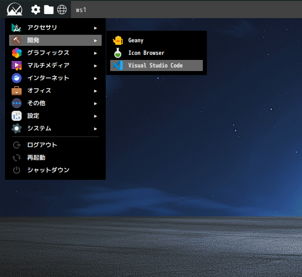 1. 概要 開発環境として、「Visual Studio Code」を使用します。 2. インストール 「MX パッケージインストーラ」で、「vscode」を検索して、インストールします。 3. 起動 「スタート」→「開発」→「Visual Studio Code」