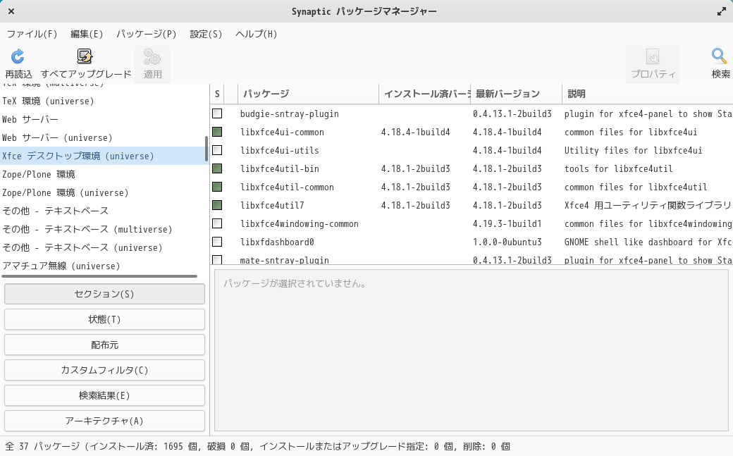 他のデスクトップは、インストールできないかと思いきや、「Synaptic」をインストールすれば、他のデスクトップをインストールするのも可能です。