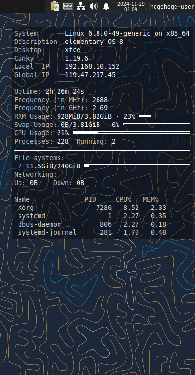 elementary OS - 8.0 - XFCE - タスクマネージャ Conky