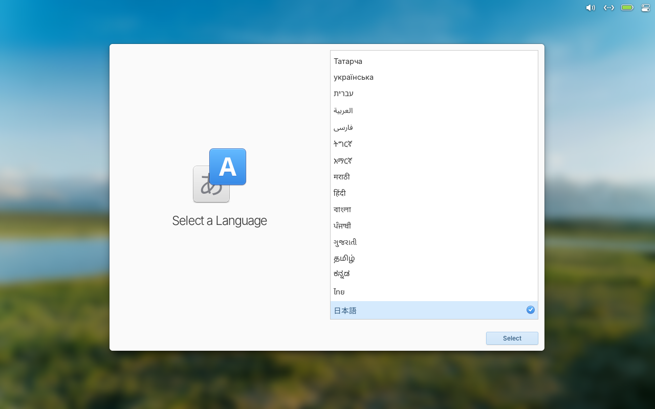 下は、上の画面で、「日本語」を選択すると表示されます。