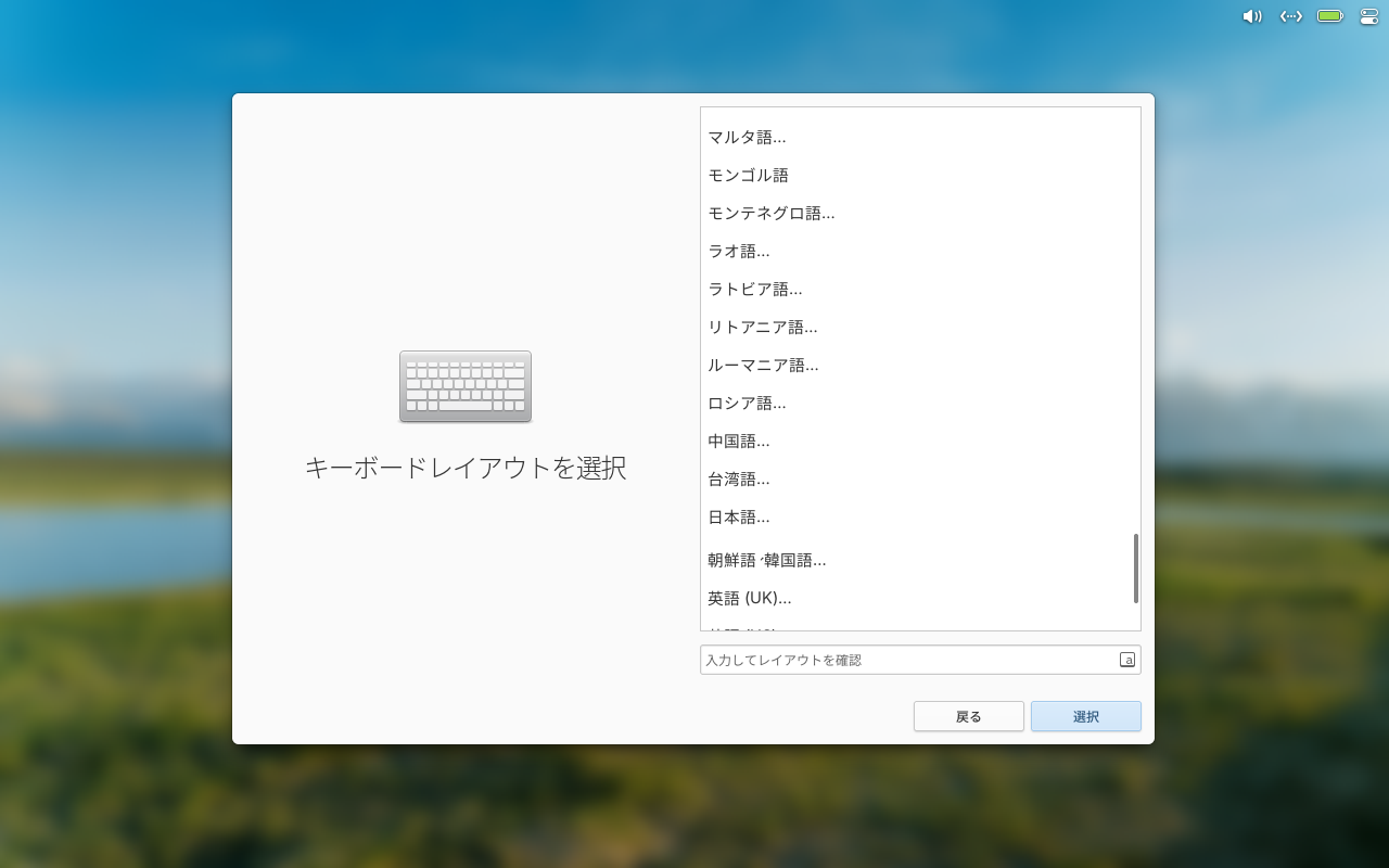 使用しているキーボードレイアウト(たいてい「デフォルト」)を選択して