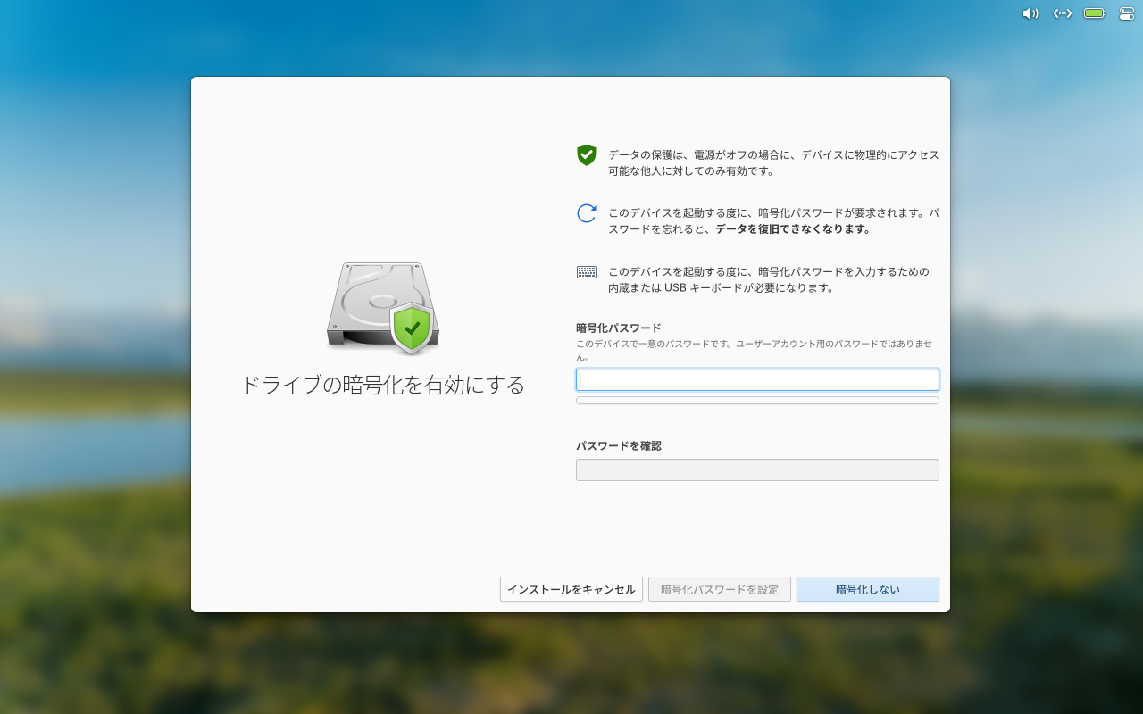 「ディスクを削除してインストール」(チェックした時点で、ボタン名が変わります)
