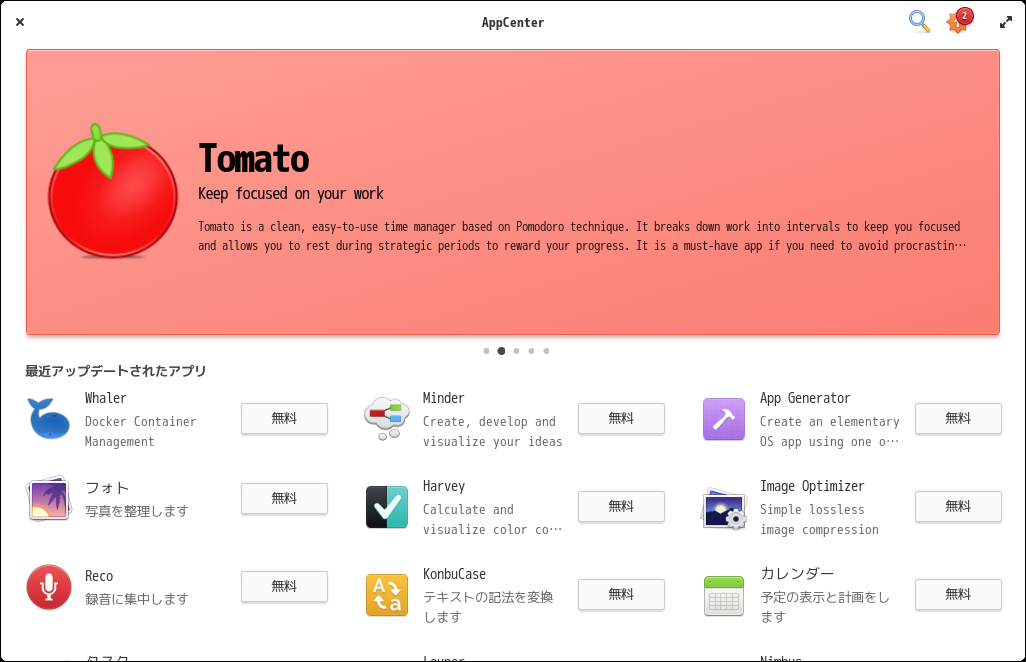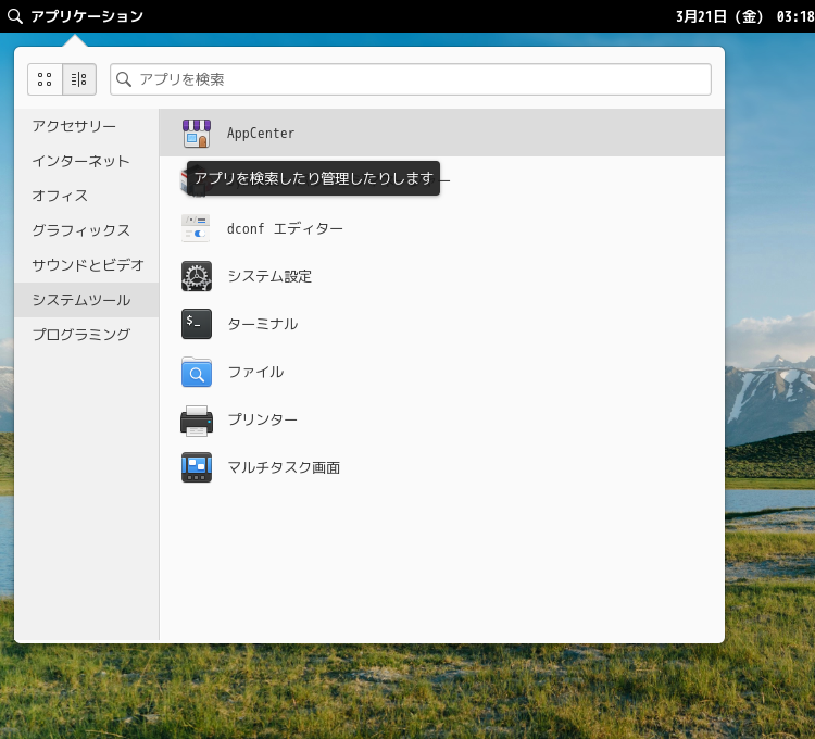 パッケージ管理フロントエンドとして「AppCenter」という独自の名称のものがインストールされています。